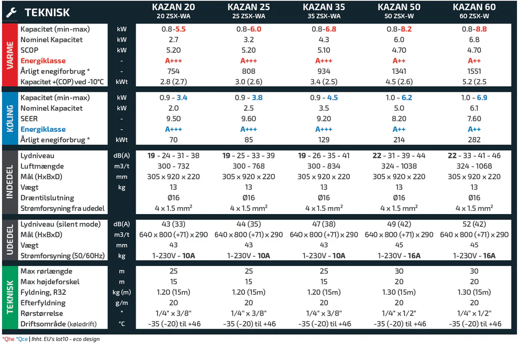 | Køle/varme metode | Luft til luft |