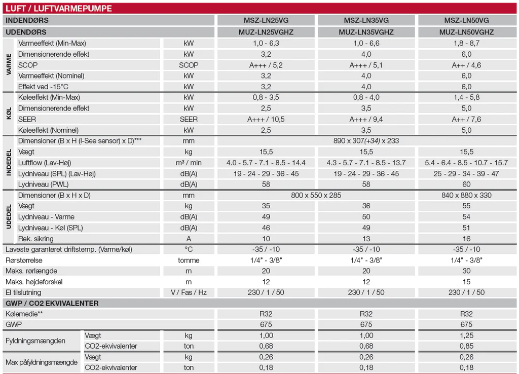 | Udendørsenhed | MUZ-LN35VGHZ |