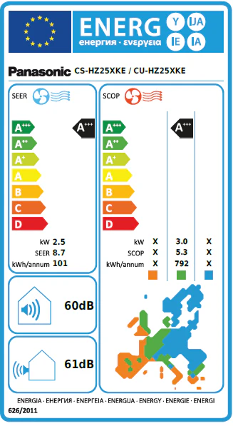| Energiklasse A=(lavt forbrug) G=(Højt forbrug) Varme | A+++ |