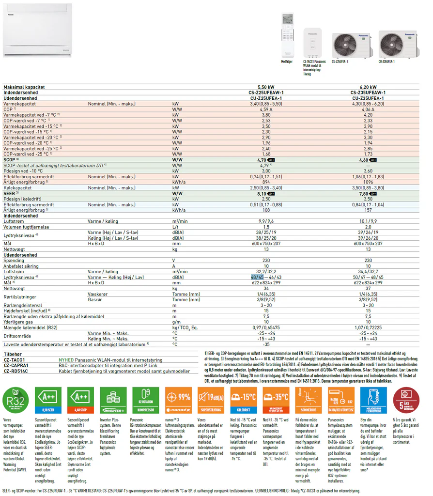 | Indendørsenhed | CS-Z25UFEAW-1 |